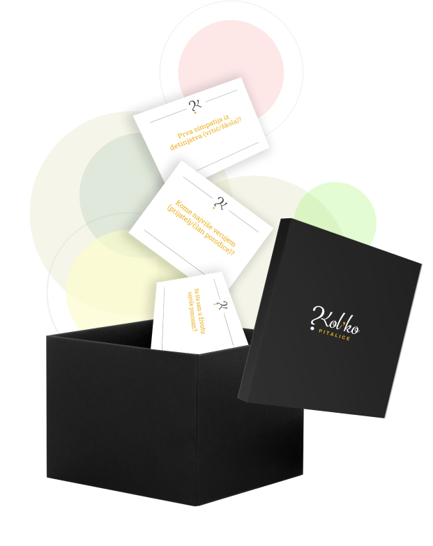 Uz kartice sa pitanjima mi vam šaljemo i set praznih kartica na koje mozete da upišete svoje odgovore, kako biste ih čuvali za budućnost i imali lepu uspomenu i razlog za smeh.